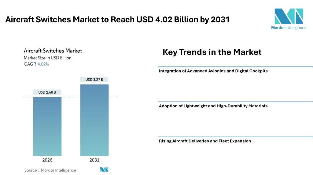 Aircraft Switches Market to Reach USD 4.02 Billion by 2031, Supported by Advanced Avionics Integration and Rising Aircraft Production – Mordor Intelligence