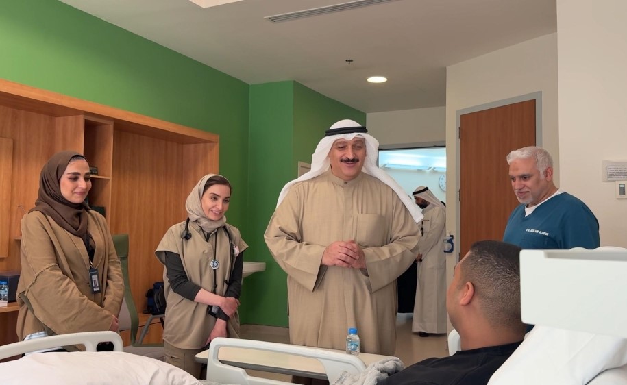 قام وزير الصحة د.أحمد العوضي بزيارة أحد منتسبي الجهات الأمنية في البلاد، والذي تعرض لإصابة أثناء تأدية واجبه في مطار دولة الكويت.