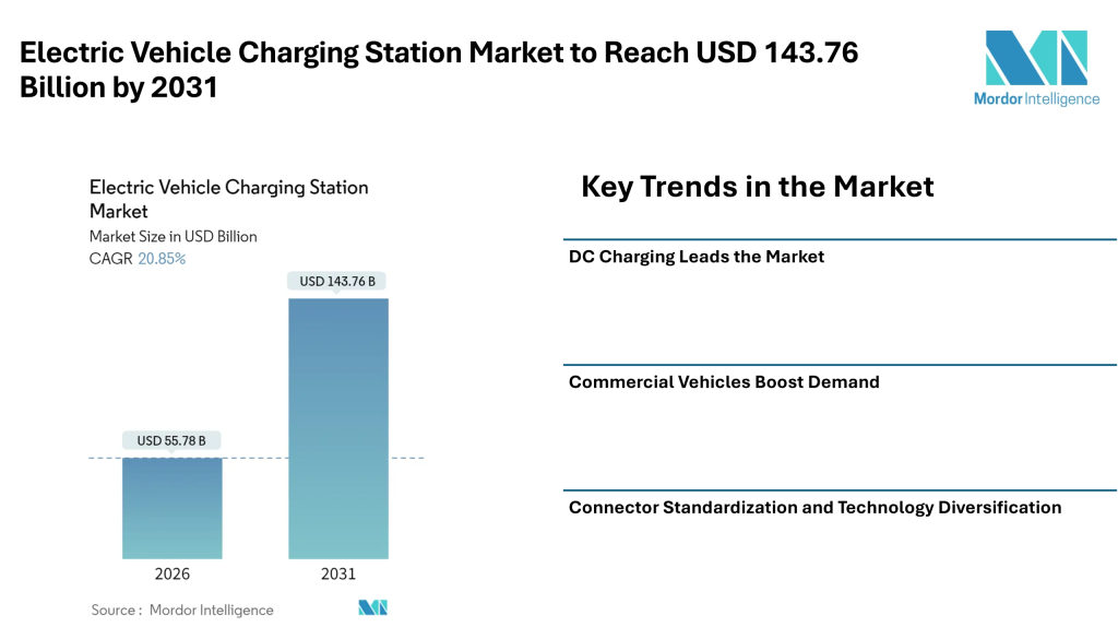 Electric Vehicle Charging Station Market to Reach USD 143.76 Billion by 2031 – Mordor Intelligence