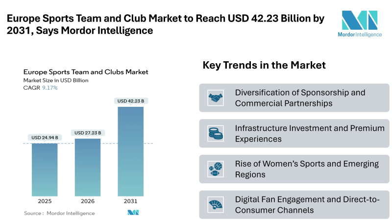 Home»NEWS»PRESS RELEASES»Europe Sports Team and Club Market to Reach USD 42.23 Billion by 2031, Says Mordor Intelligence