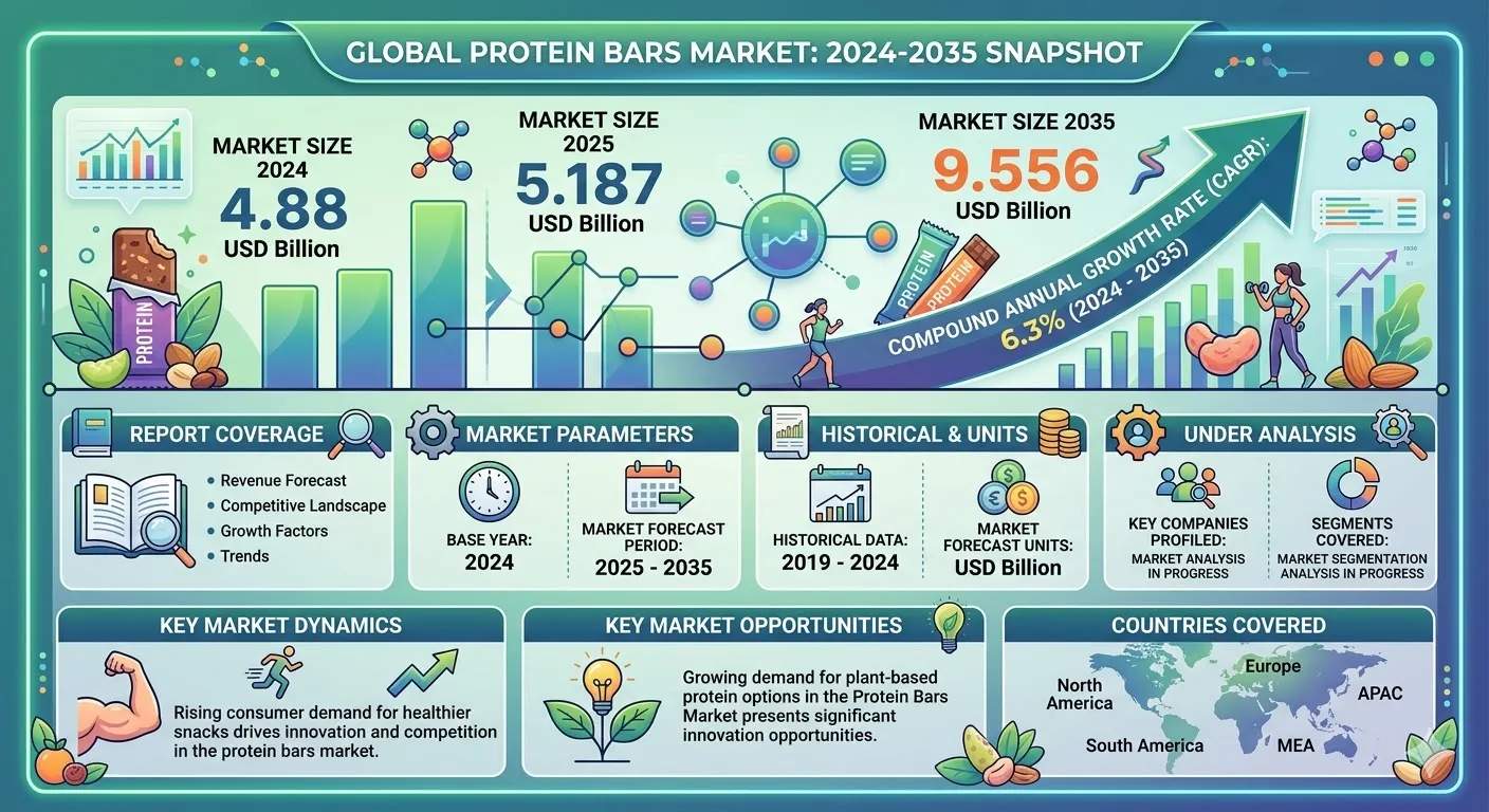 Market Size in 2024: The Protein Bars Market was valued at USD 4.88 Billion in the base year of 2024, reflecting a robust and alreadymature industry with significant momentum.