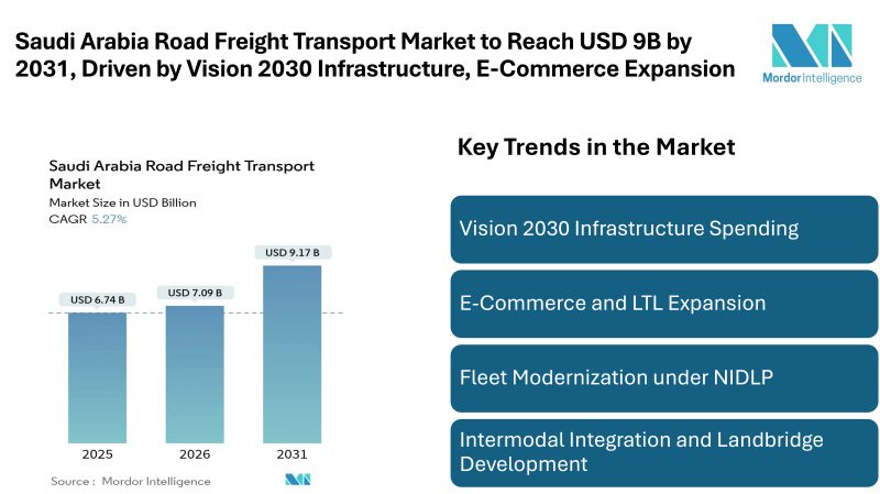 Home»NEWS»PRESS RELEASES»Saudi Arabia Road Freight Transport Market to Reach USD 9B by 2031, Driven by Vision 2030 Infrastructure, E-Commerce Expansion