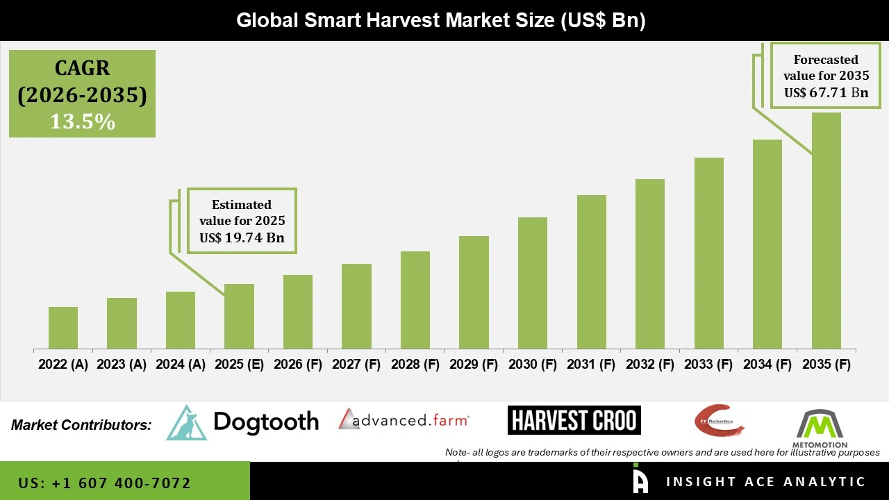 InsightAce Analytic Pvt. Ltd. announces the release of a market assessment report on the “Global Smart Harvest Market Size, Share & Trends Analysis Report By Component (Software and Hardware (Harvesting Robots, Control Systems, Automation, Sensors, Imaging Systems)), Operation Site (On-field, Indoor, and Greenhouse), Automation Level (Semi-Automated and Fully Automated), Application (Harvesting, Cultivation, Planting, and Irrigation), Crop Type (Grains and Pulses, Fruits and Vegetables, Oilseeds and Nuts),-Market Outlook And Industry Analysis 2035″