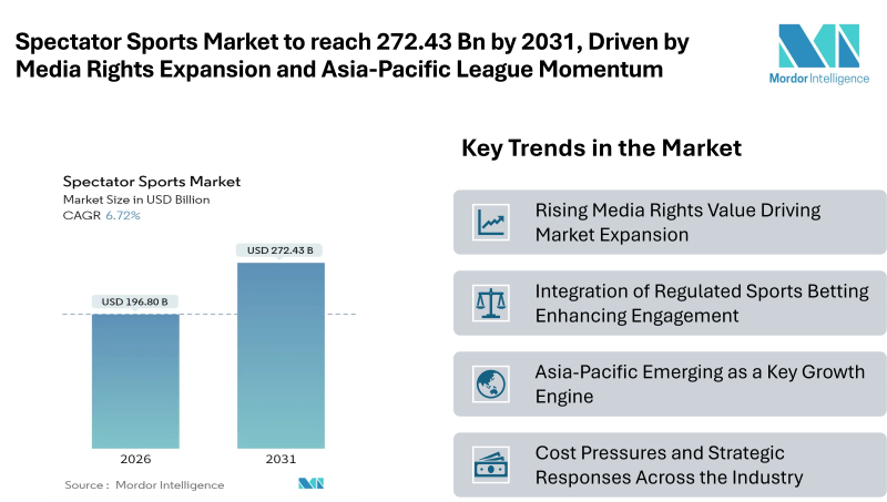 According to Mordor Intelligence, the Spectator Sports Market Size was valued at USD 184.41 billion in 2025 and is projected to reach USD 272.43 billion by 2031, reflecting sustained demand across major sports and regions. Live competitions remain a core entertainment choice, supported by strong emotional attachment and habitual viewing behavior.